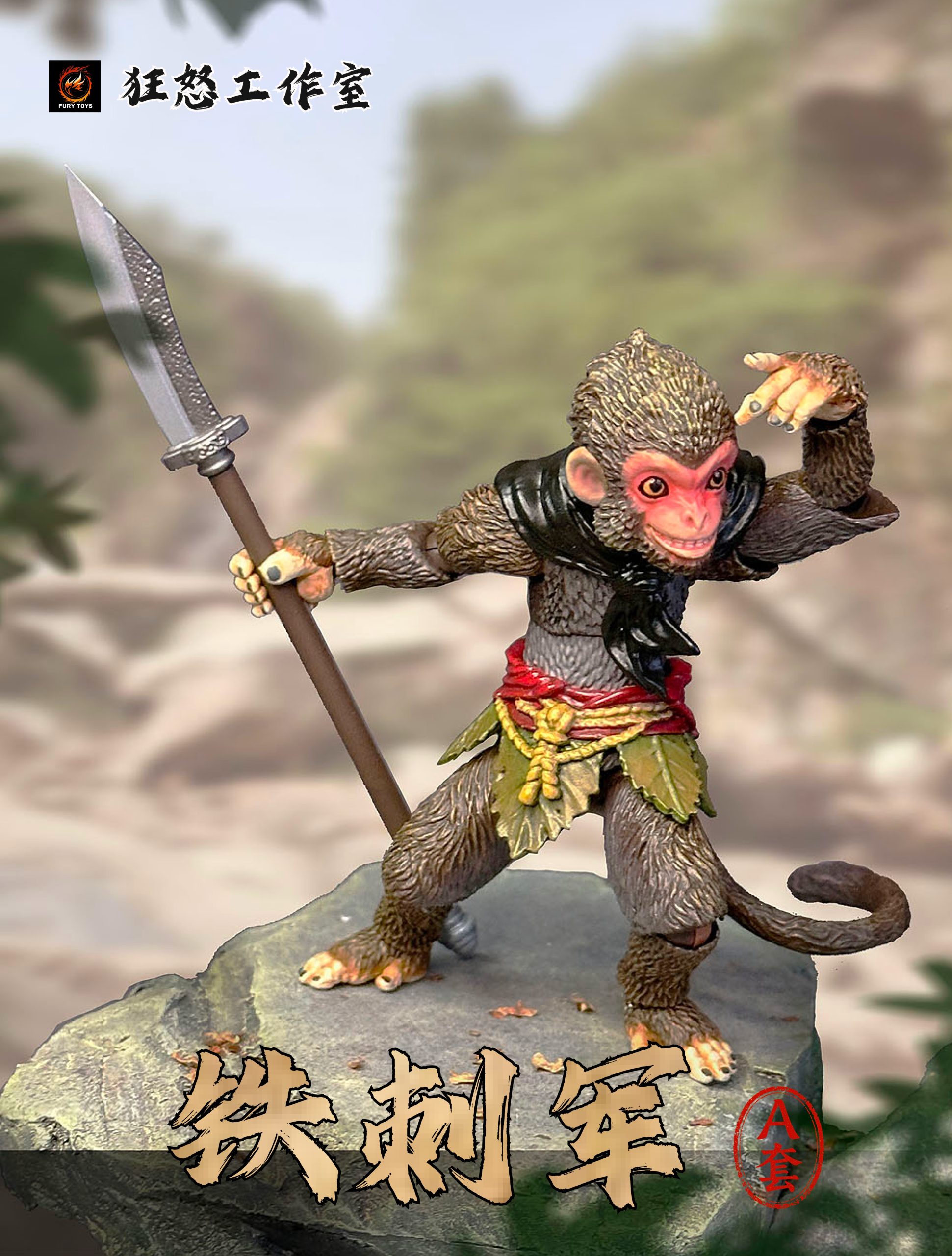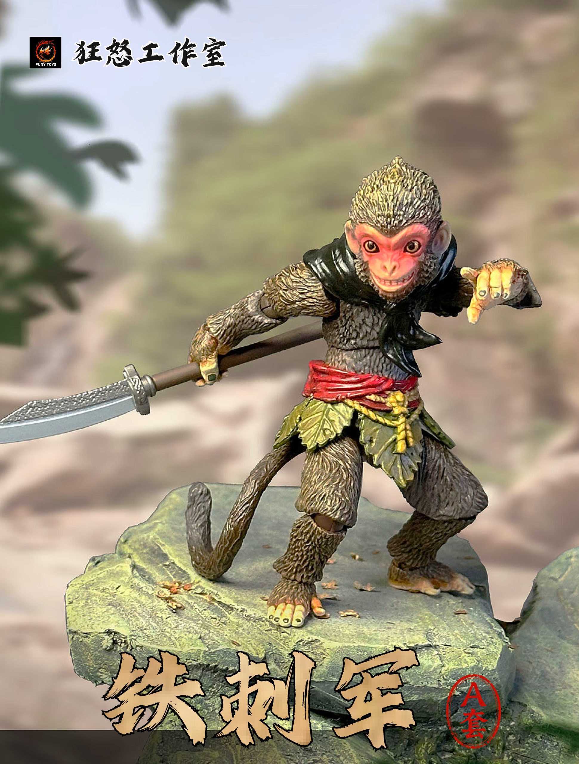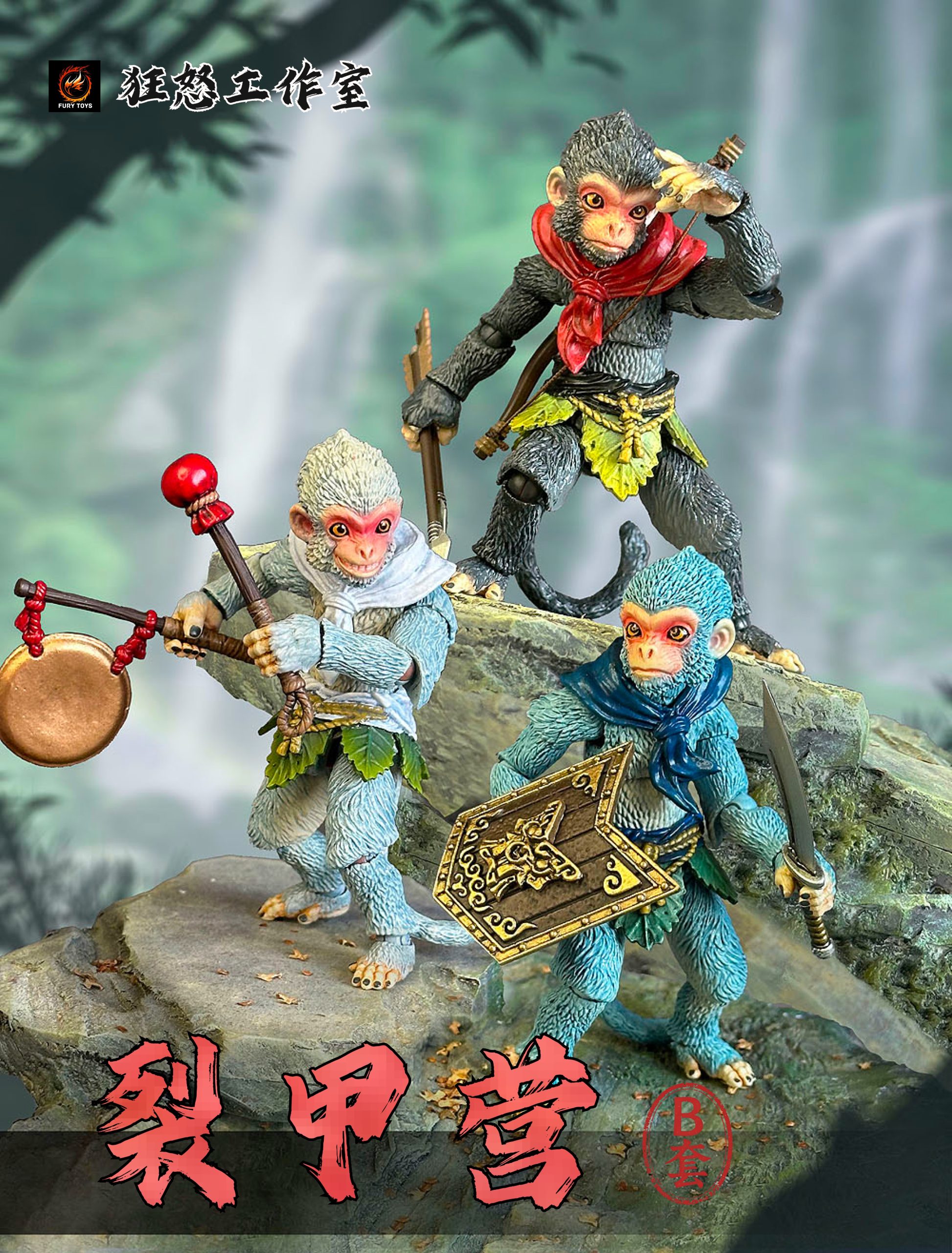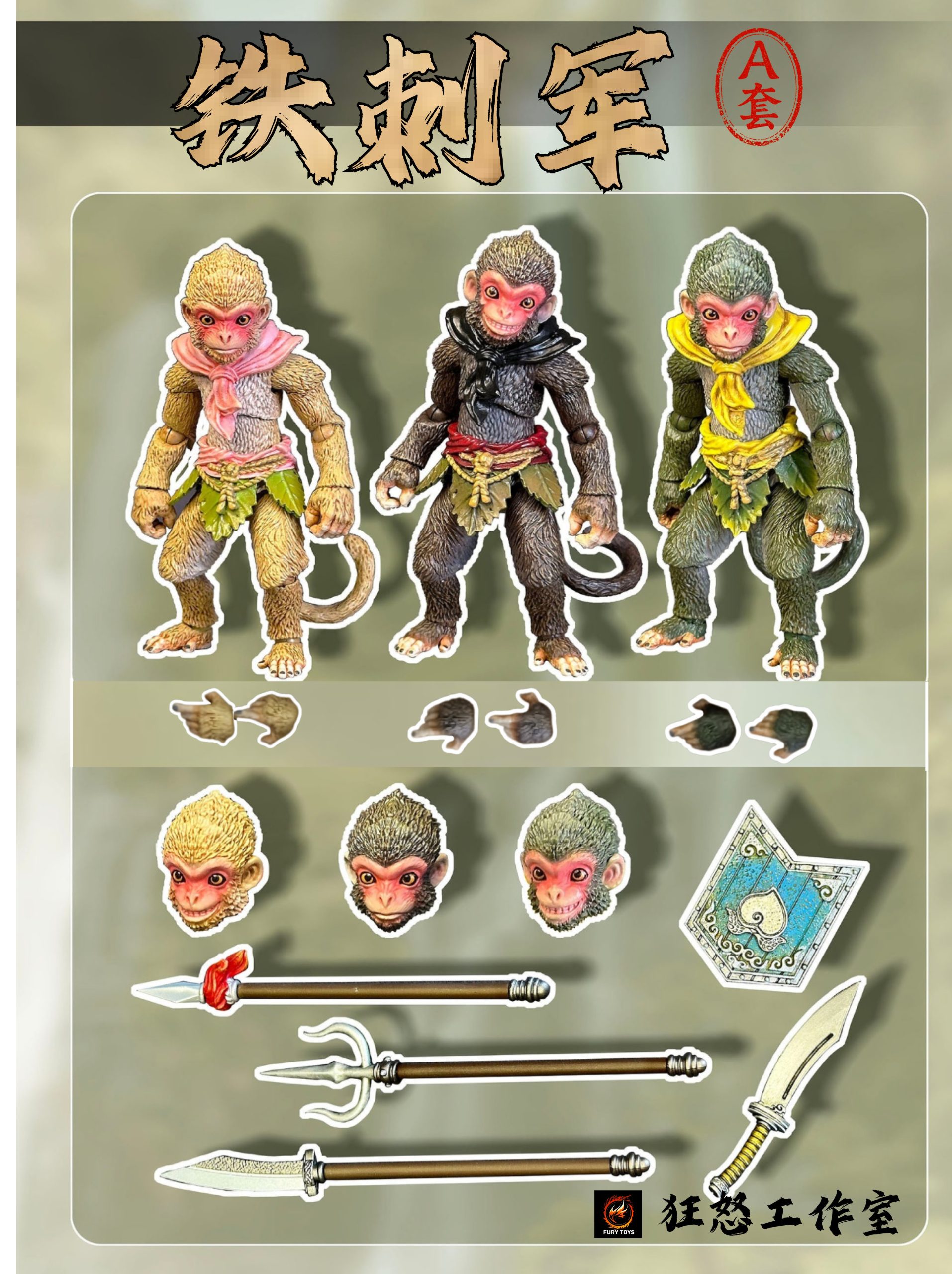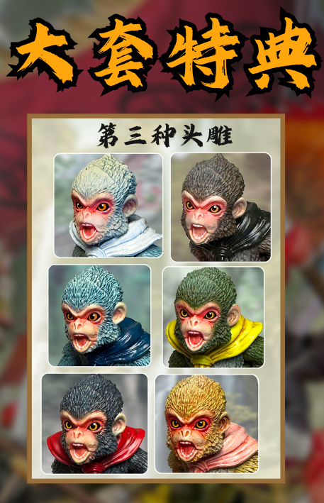 – 3 different colorful monkeys with calm faces