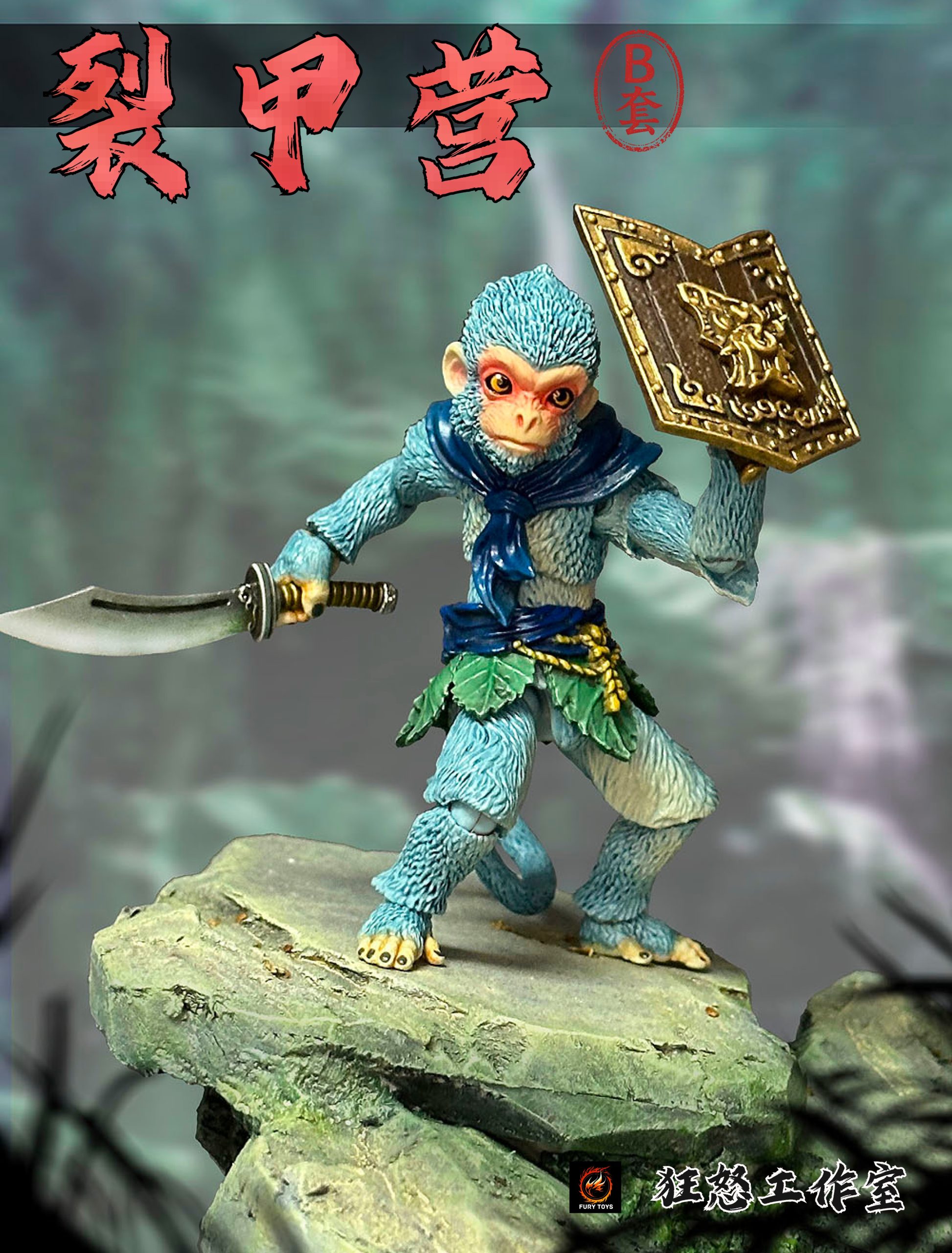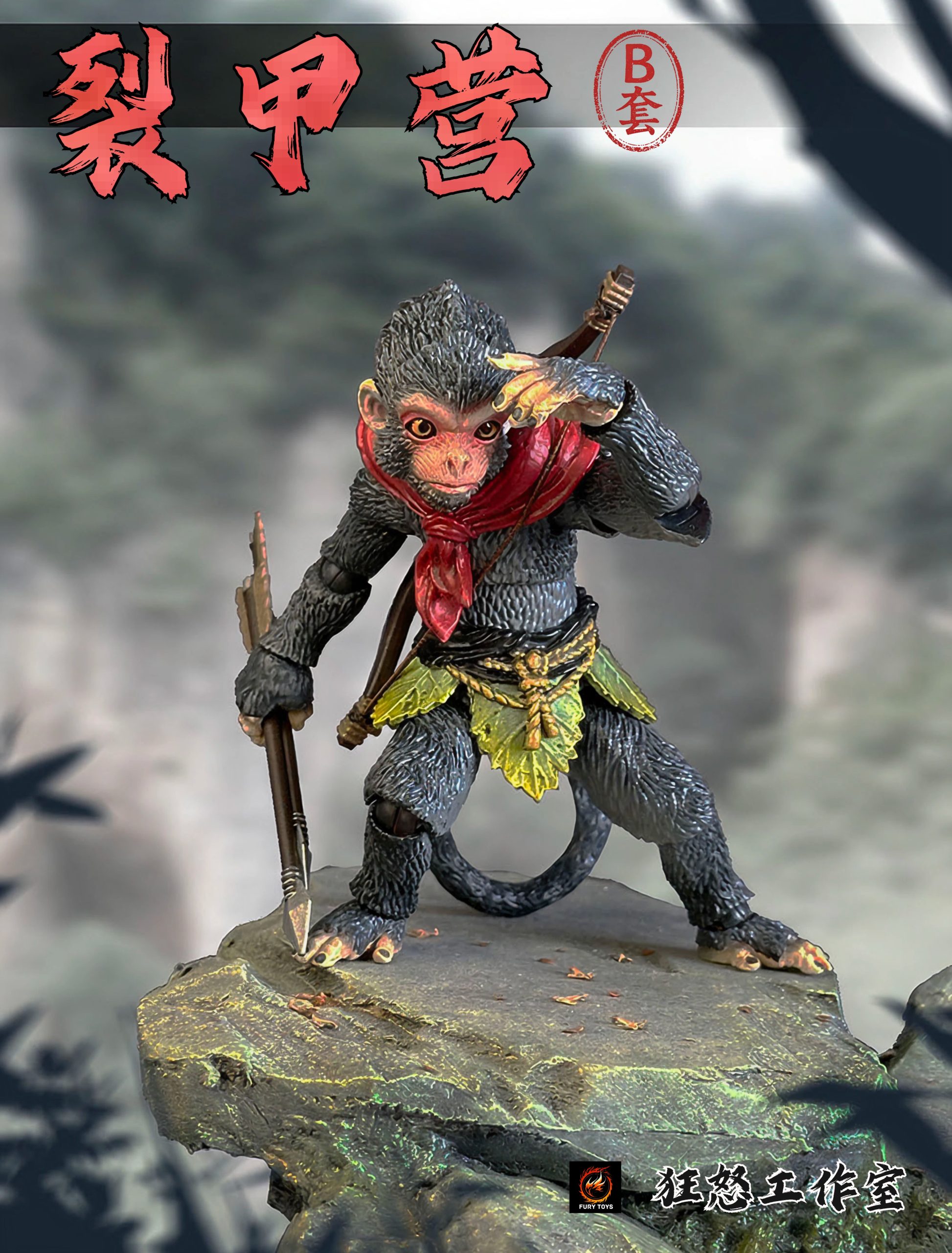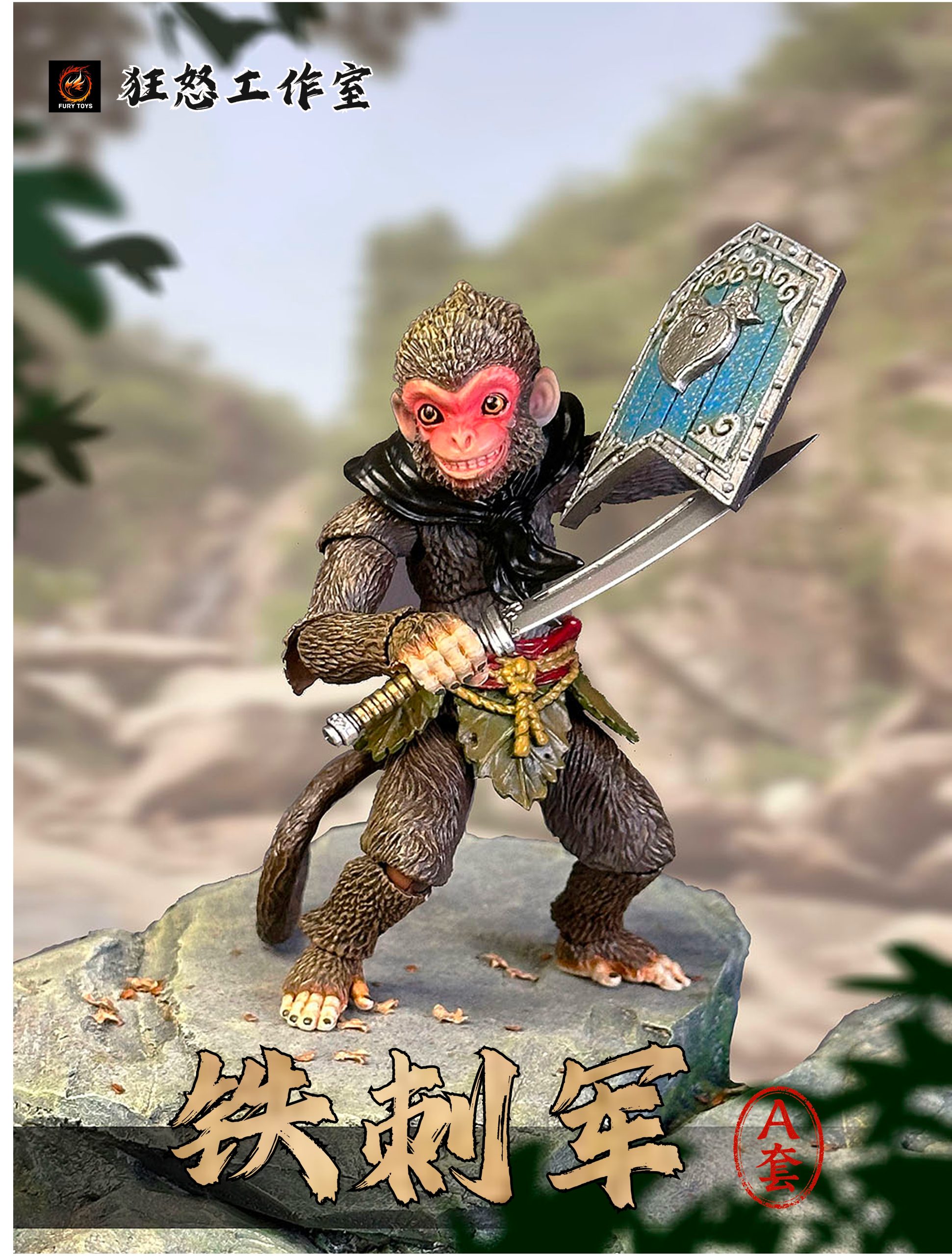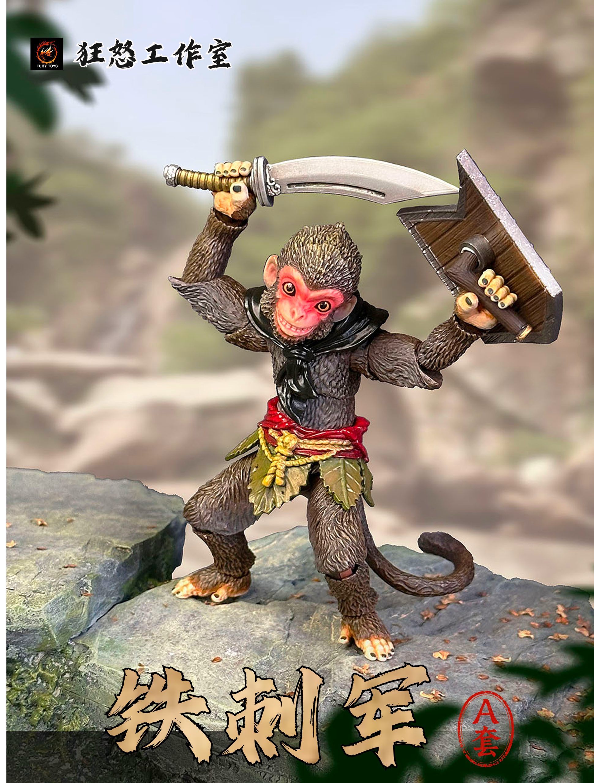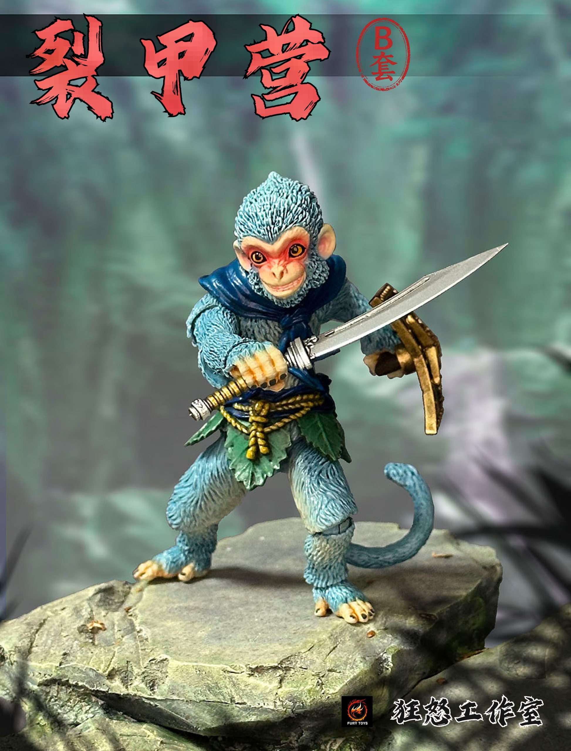 – 3 different colorful monkeys with calm faces