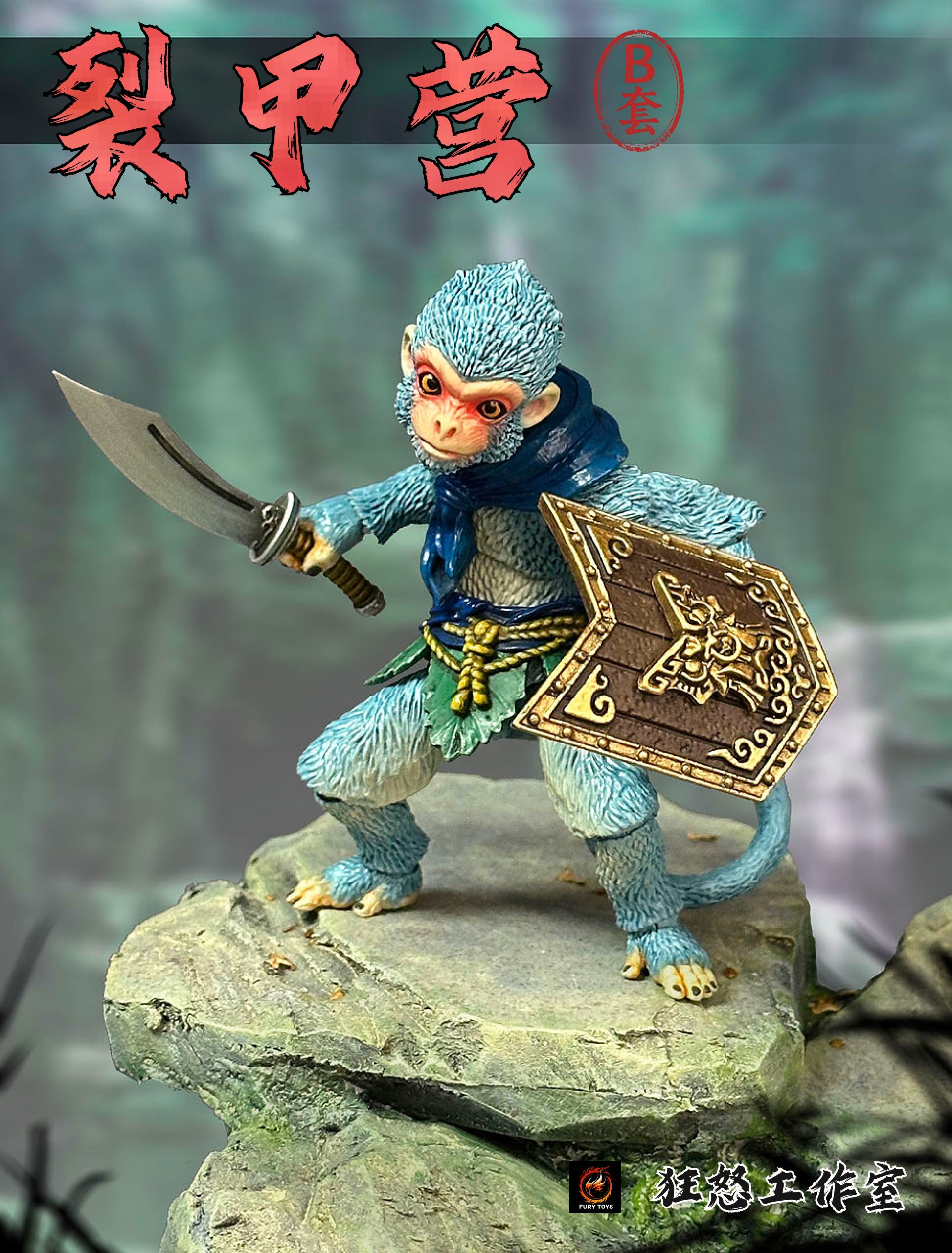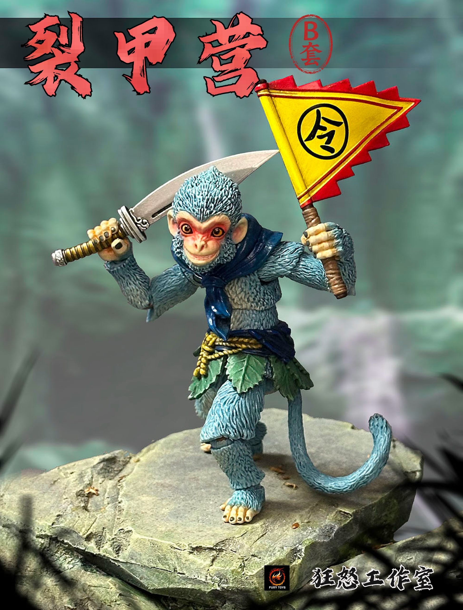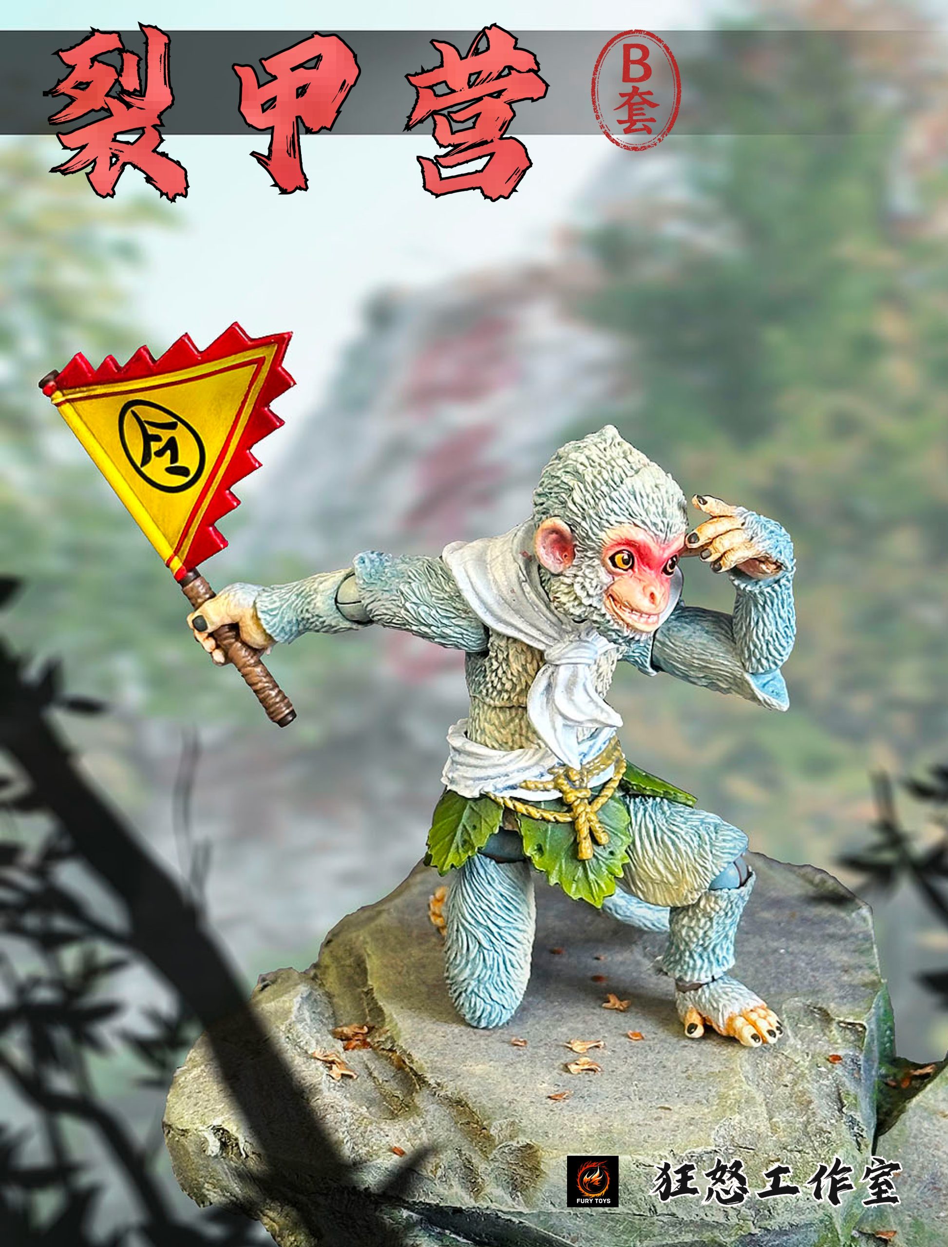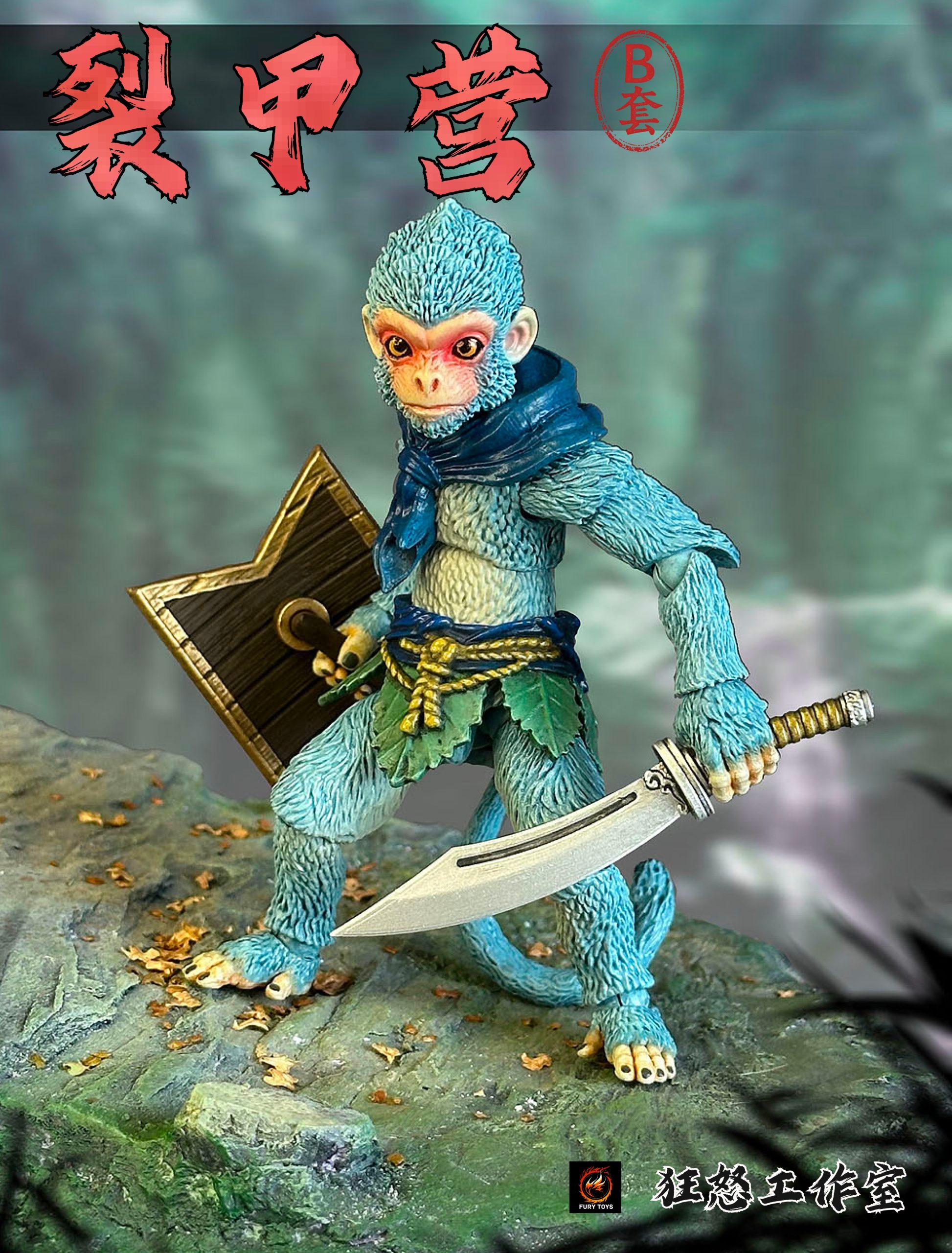 – 3 different colorful monkeys with calm faces